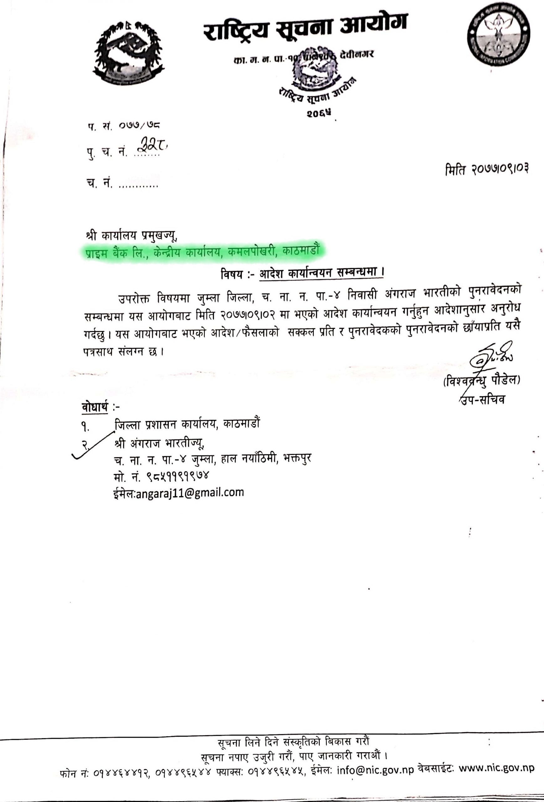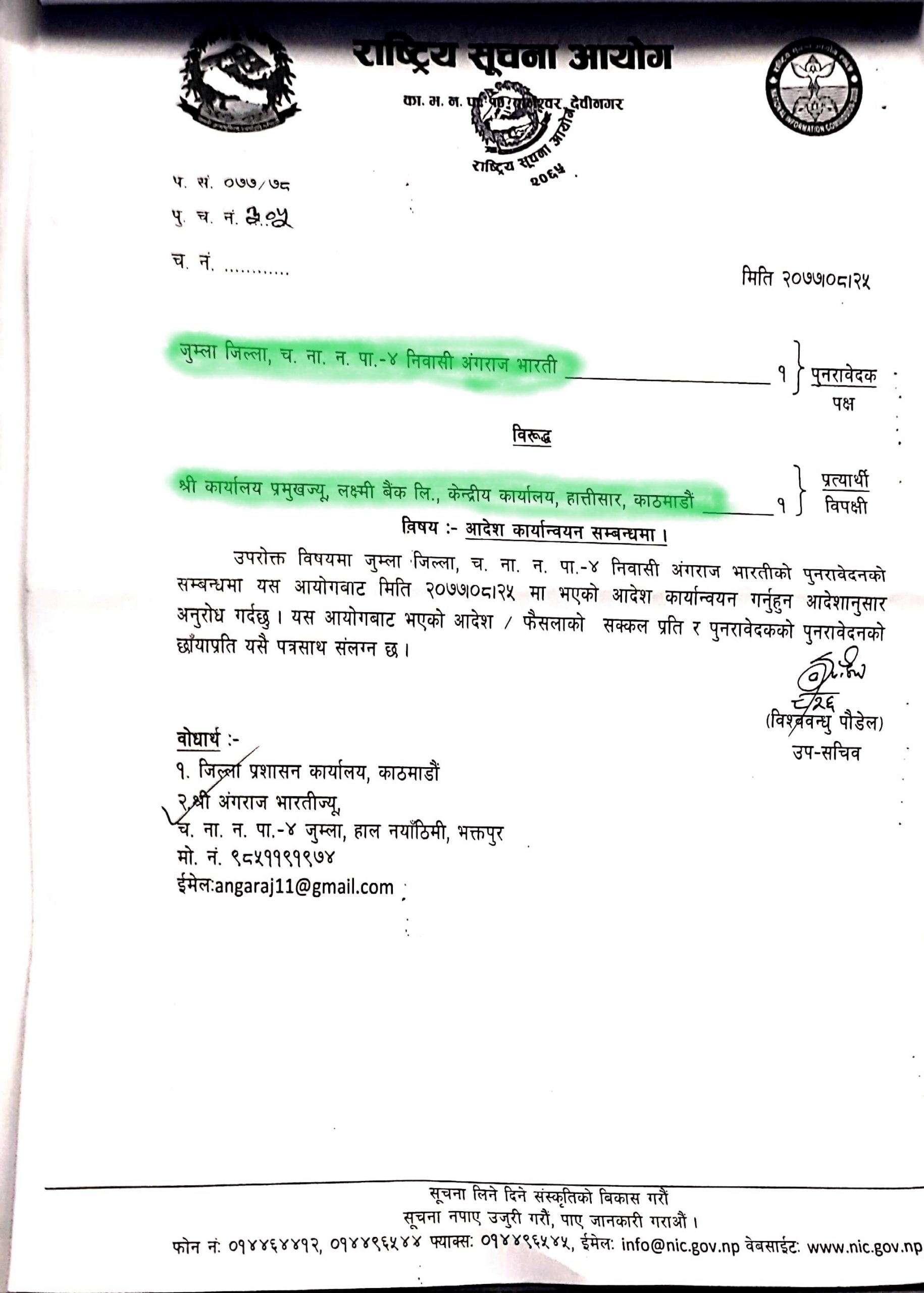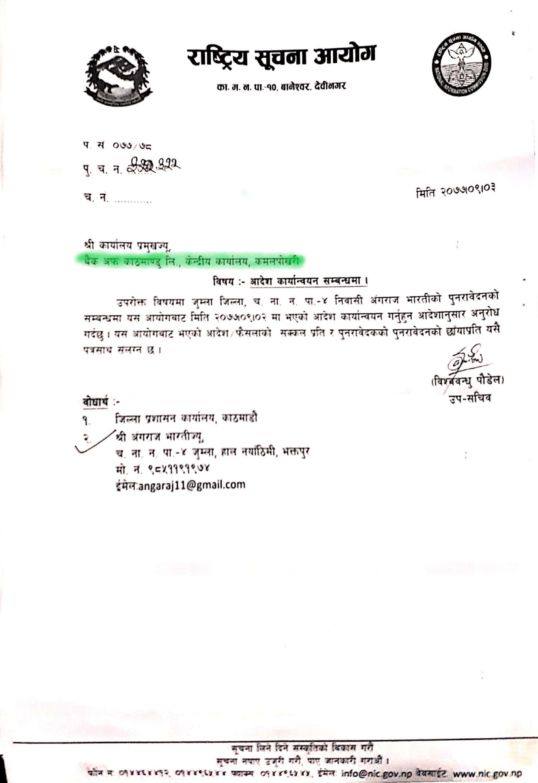 राष्ट्रिय सूचना आयोगको आदेश हेर्नुहोस् यी तस्वीरमाः