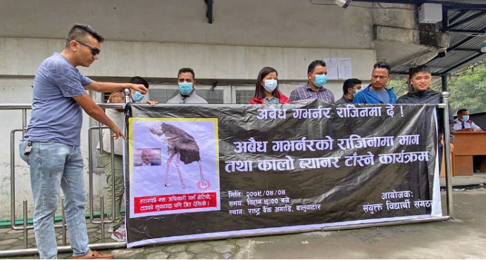 नेपाली कांग्रेसको विद्यार्थी संगठन नेविसंघ, नेकपा माओवादी केन्द्रको अखिल क्रान्तिकारी र एकीकृत समाजवादीको अनेरास्ववियूले मंगलबार संयुक्त विज्ञप्ति जारी गरी गभर्नर बर्खास्तीको माग गर्दै चरणवद्ध आन्दोलन घोषणा गरेका छन् ।