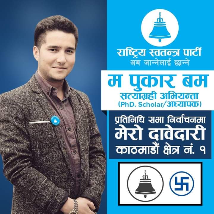 काठमाडौं – काठमाडौं क्षेत्र नम्बर १ मा स्वतन्त्र उम्मेदवारी घोषणा गरेका पुकार बमले राष्ट्रिय स्वतन्त्र पार्टीको घण्टी चुनाव चिह्नबाट चुनाव लड्ने भएका छन् ।