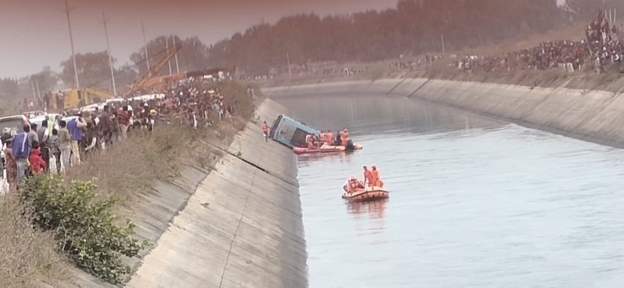 बस नियन्त्रण गुमाएर नहरमा खसेको हुन सक्ने आँकलन गरिएको छ । प्रदेशका मुख्यमन्त्री शिवराज सिंह चौहानले उद्धारकार्य जारी रहेको बताउनुभएको छ ।