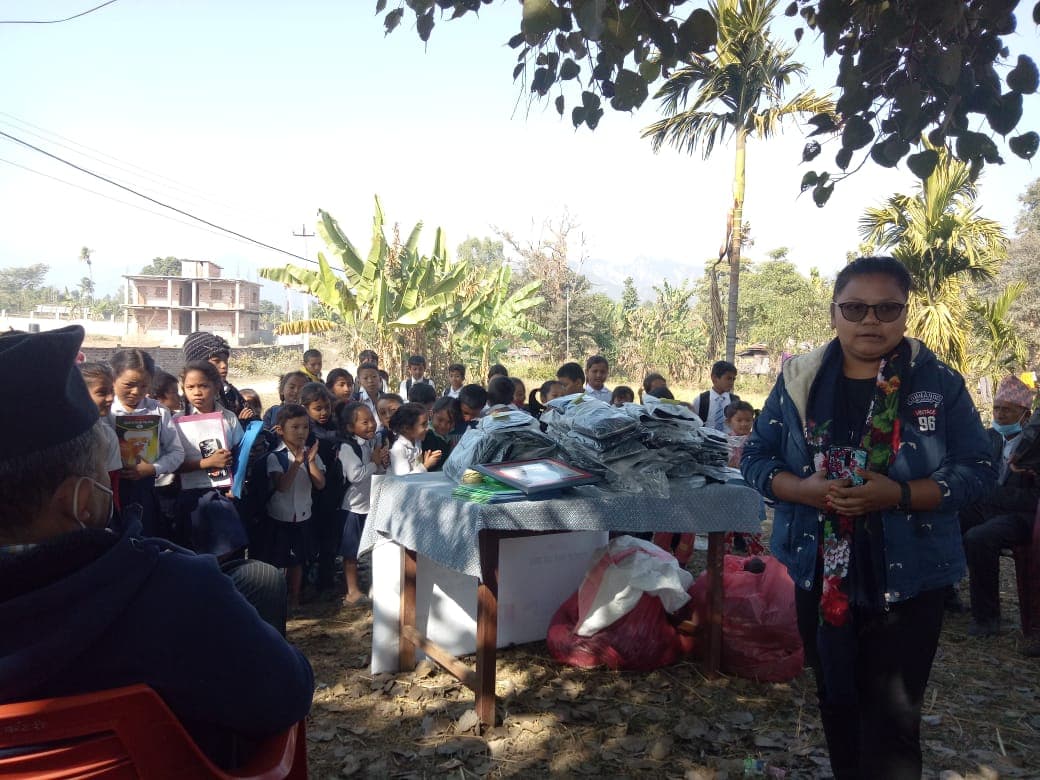 सबै विद्यार्थीलाई एक एक थान सुइटर, टाउजर, पन्जा र उनीको टोपी वितरण गरिएको उहाँको भनाई छ । जाडोमा न्यानो कपडा वितरण भएपछि विद्यालयका विद्यार्थी, अभिभावक तथा शिक्षकहरुले खुसी व्यक्त गरेका छन् ।