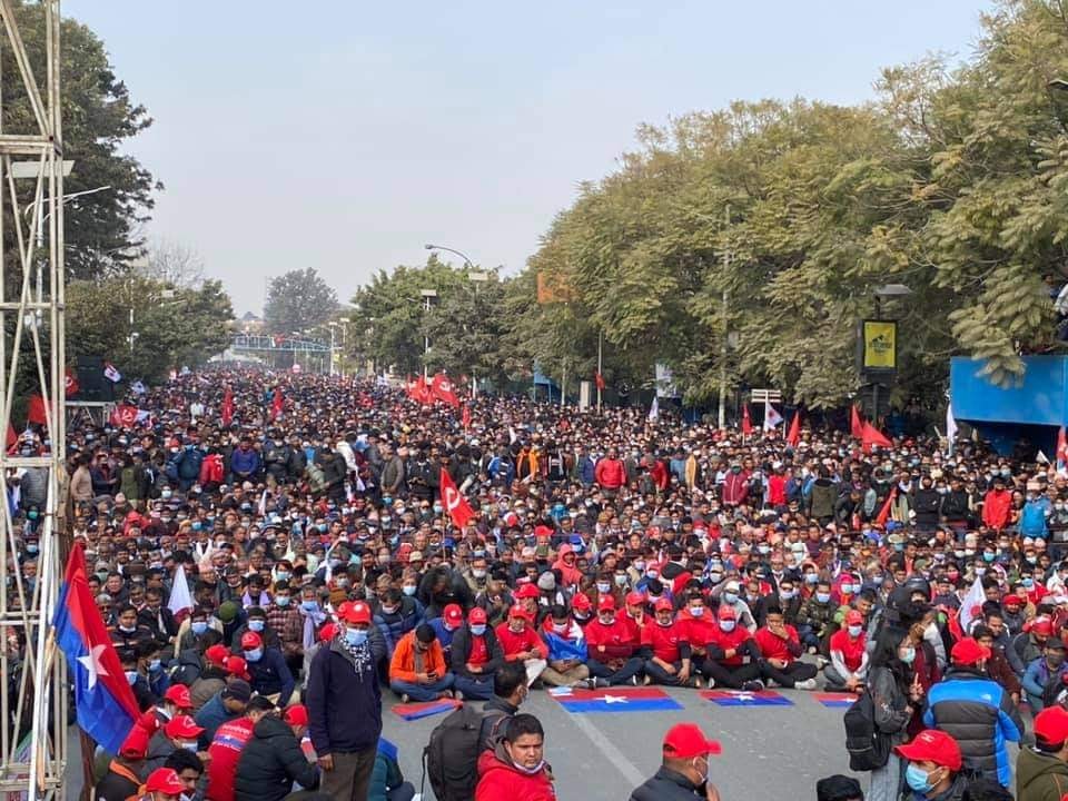 सभालाई सम्बोधन गर्दै अध्यक्षद्वय पुष्पकमल दाहाल ‘प्रचण्ड’ माधवकुमार नेपाल, वरिष्ठ नेता झलनाथ खनाल र नेता घनश्याम भुषालले जनताको बलमा ओलीको प्रतिगामी कदम परास्त गरेरै छाड्ने दाबी गर्नुभएको छ । उहाँहरुले केपी ओलीको संविधान, संघीय लोकतान्त्रिक गणतन्त्र र संसदबिरुद्धको प्रहारबाट जोगाउन संघर्षको विकल्प नभएको प्रतिक्रिया दिनुभएको छ ।